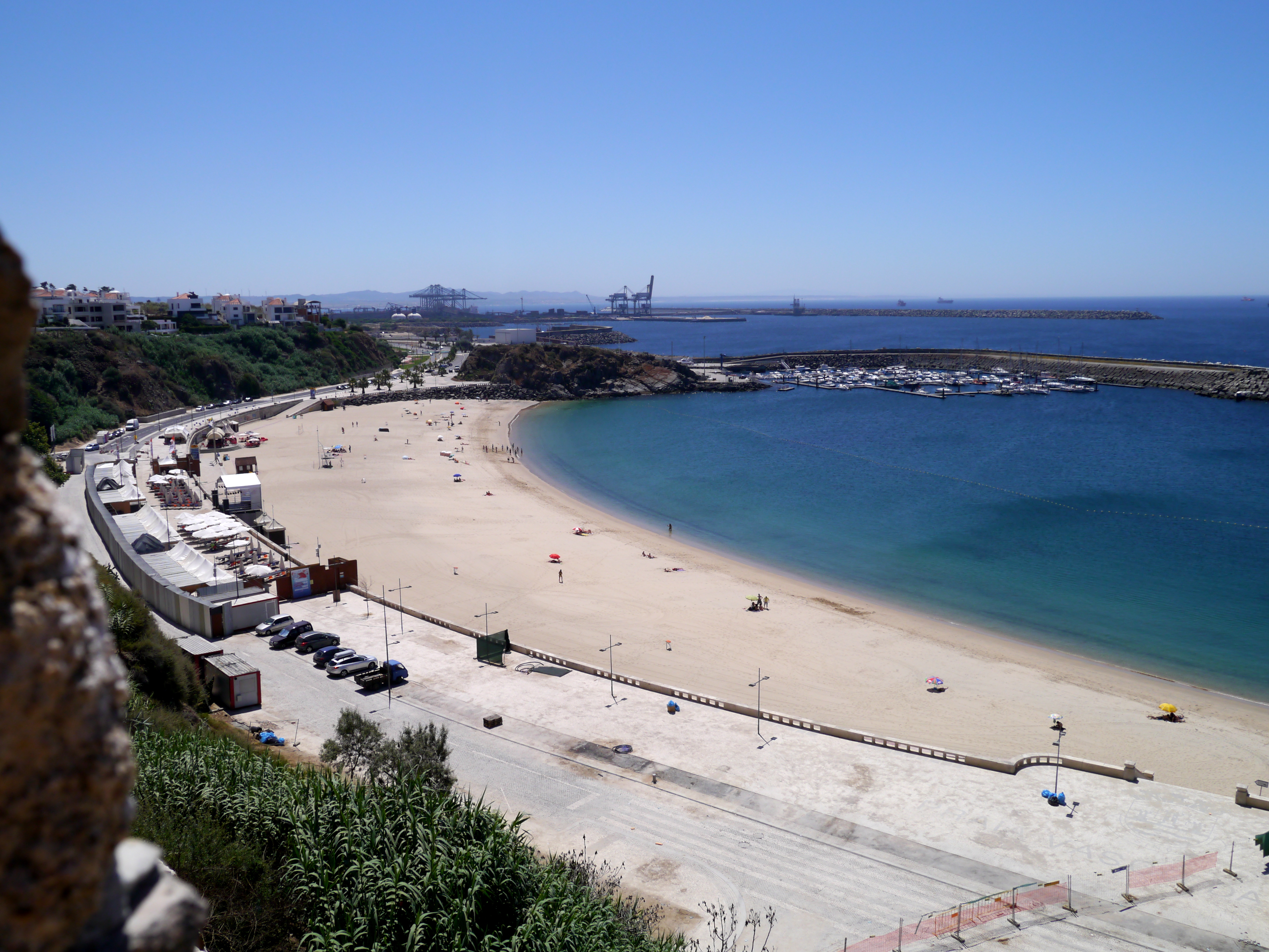 We had an early night for next day we were off to Sines, birthplace of Vasco de Gama. I have already posted about our whale spotting en route as I could not wait. Sines is the oddest place we have been so far. There are oil refineries, some burning off gas and quite a lot of industry to see on the approach. Once in the harbour this is all masked by the town. This looks picturesque, ranged round the walls of an old fort on the cliff tops behind a flawless beach named after Vasco and overlooked by an impressive statue of him. The marina is tucked behind one harbour wall overlooking the beach and a fishing dock is across behind the opposite one. There was no VHF channel on which to contact the marina, but three marineras were waiting to direct and help people as they arrived, probably on account of the wind. The marina headquarters is new and everyone was most helpful. There was information about the extensive marine conservation activities that went on here. So far so good.