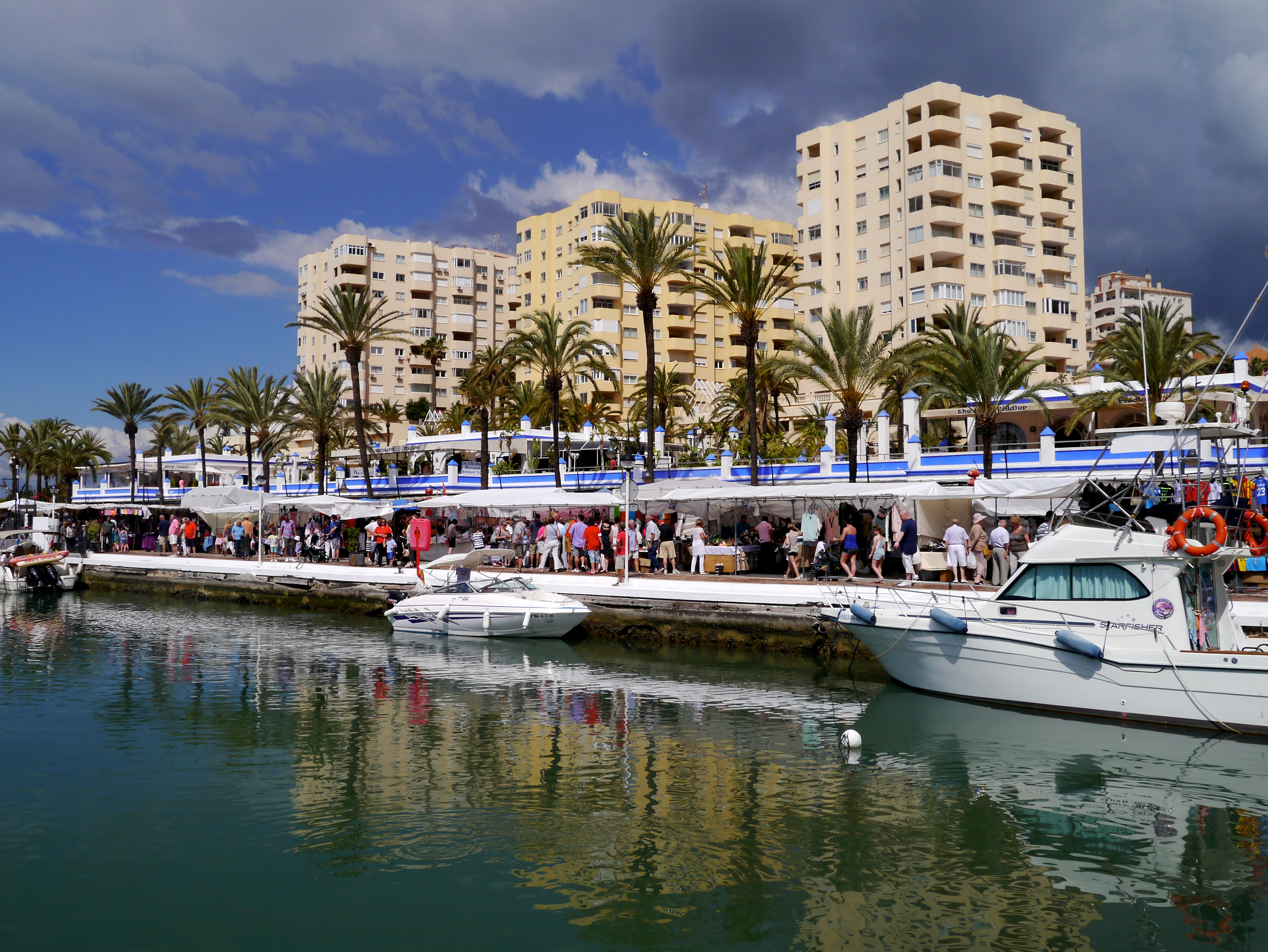 We woke to blue skies. At the end of the marina a market was spread along the walkway in front of the restaurants.