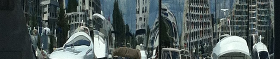 The Grande Motte is much more attractive than it seems from the photos in our pilot book. In the photographs and on our approach the marina seemed dominated by triangular high-rise apartment blocks, like a Legoland Valley of the Kings. Once you are walking amongst them you see the blocks are individually styled, with different balcony shapes forming patterns across the face of the blocks to yield a dynamic quality to the whole. The blinds for each building are in shades of the same colour to give coherence to each block and there are trees and shrubby garden areas throughout. It seems to be a sort of garden city in the sky. The sea front is equally well thought out, the long beach being split into coves with curved stone breakwaters and artificial reefs, so on Sunday the sea fanned in gently on a series of rippling curves. It was ideal for children and there was a big soft play area with giant Nemo and Asterix figures to climb into and slide down. After walking along looking out to sea, we wandered back perusing the restaurants. One seemed very bustling and a queue had formed at its’ entrance. As we debated whether or not to join it a couple at the front was turned away, presumably for not having a reservation. We moved on. It was hard to decide, the wind blew in from the sea and there were dark clouds overhead, but the interiors of the restaurants seemed cramped.